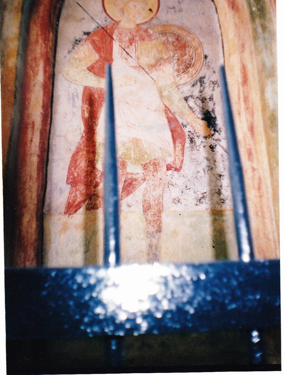 В действующей церкви мы увидели иеромонаха с длинными вьющимися волосами и очень дружелюбным лицом. Нам он показался человеком среднего возраста. Но мы так и не поняли сколько ему лет.Он дружелюбно нас встретил. Расспросил о цели приезда, сказал, где у них есть деревянный домик, выполняющий роль гостиницы для паломников.