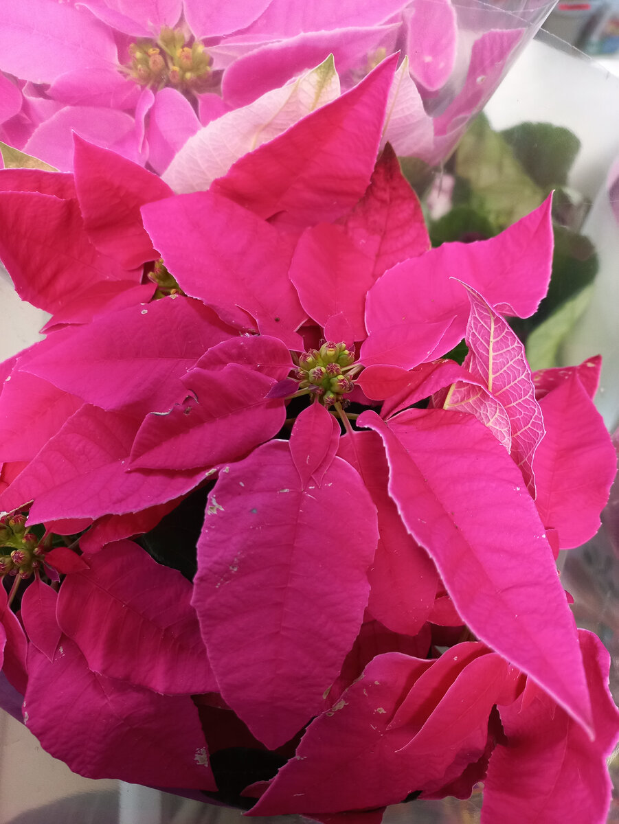 Э уфорбия, Пуансетия, Молочай красивийший, все это название одного цветка впростонароде его называют "Рождественская звезда". Потому что цветет такое растение на Рождество, в Европе его называют "Вифлеемской звездой" Этот цветок является представителем рода Молочай семейства Молочайные, так как при надрезе выделяет белый млечный сок. Несколько интересных фактов: - Вы знали что это растение в диких условиях вырастает до 4 метров. - Что растениее вечнозеленое. - Что в природе растёт только растение с красными листьями. В домашних условиях высота Пуансетии не превышает 50 см. Темно-зеленые листовые пластины эллипсовидной формы имеют черешки, зубчатую кромку и длину от 10 до 15 сантиметров. Соцветия розетковидной формы состоят из бледно-желтых маленьких цветков, а вокруг них формируются прицветники насыщенно-красного цвета, при этом незнающие люди полагают, что это цветки. На сегодняшний день благодаря селекционерам на свет появились сорта с белыми, розовыми, желтыми прицветниками,
