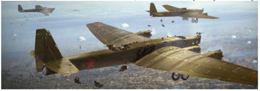 Создание ВТА в СССР было воплощением в жизнь теории глубокой наступательной операции, разработанной у нас на рубеже 1920–30-х гг. Воздушным десантам отводилась в такой операции заметная роль, но соответствующей авиатехники не было. Планировалось использовать для десанта новые самолеты ТБ-1 (АНТ-4) и Р-5. Пока разворачивалось их серийное производство, первый десант в количестве 12 человек был десантирован с самолета «Фарман-Голиаф» за два вылета. Осуществлено это было 2 августа 1930 г. под Воронежем. Вооружение и боеприпасы десантникам сбросили с трех двухместных самолетов Р-1. Впоследствии эта дата, совпавшая с православным праздником пророка Илии, стала у нас отмечаться как День ВДВ.