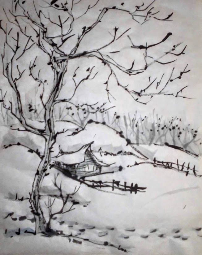 Китайская тушь, рисовая бумага 29,5 Х 22,5