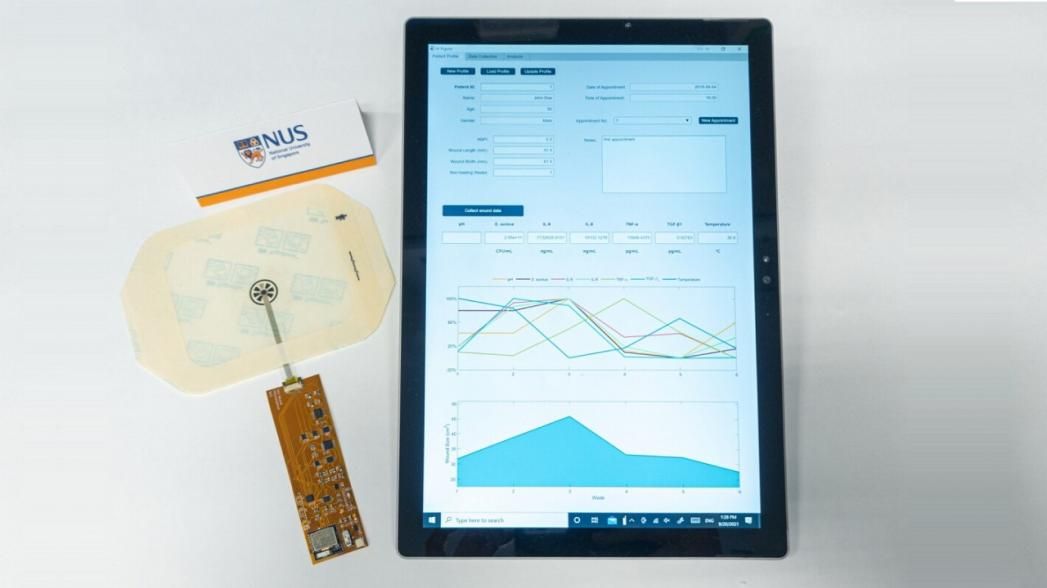 Сегодня около 2% населения мира имеют дело с незаживающими ранами, такими как диабетическая стопа и хронические венозные язвы на ногах. Для ускорения восстановления ран необходим своевременный уход и правильное их лечение. В настоящее время клинические оценки такого типа ран зависят от визуального осмотра или сбора раневой жидкости для обнаружения и анализа специфических биомаркеров - процесс, который может занять день или два и "может помешать" медицинскому вмешательству. Хотя в последнее время появились гибкие датчики для лечения ран, они могут определять лишь ограниченный набор маркеров, таких как кислотность и температура. В Сингапуре разработан новый "умный" носимый сенсор, который в режиме реального времени способен оценивать состояние хронических ран и по беспроводной связи передавать данные в мобильное приложение. Технология была разработана исследовательской группой факультета биомедицинской инженерии Национального университета Сингапура и Института инноваций и технологий в об