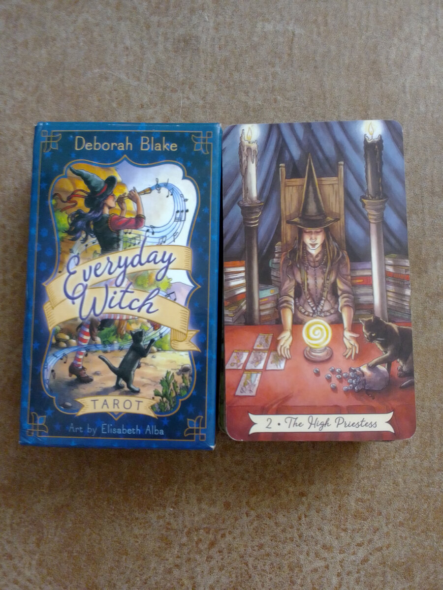 У меня несколько колод с картами Таро, коллекцией это сложно назвать, но все же кое-что имеется. Решила поделиться с вами самыми позитивными картами, которые у меня есть. Очень люблю эту колоду "Ведьма каждый день".Автор карт Дебора Блейк, а художник Элизабет Альба. Элизабет Альба использует современные техники акварели в стиле, часто встречающемся в искусстве фэнтези и иллюстрациях к детским книгам. Изображения причудливы, с сильными яркими цветами и линиями. Каждая карта детализирована и хорошо сбалансирована, выполнена с ловкостью и уверенностью. Изображения были созданы специально для этой колоды с воображением, оптимизмом и юмором. Сами ведьмы щеголяют в своих конических шляпах и полосатых колготках (или чулках, леггинсах). Они занимаются ведьмовскими делами, которые уже давно являются частью их повседневной жизни. В колоде собраны не только барышни, но и мужчины колдуны и ведьмаки, а также на каждой карте присутствует один или несколько котов. Все персонажи живут в выдуманном м