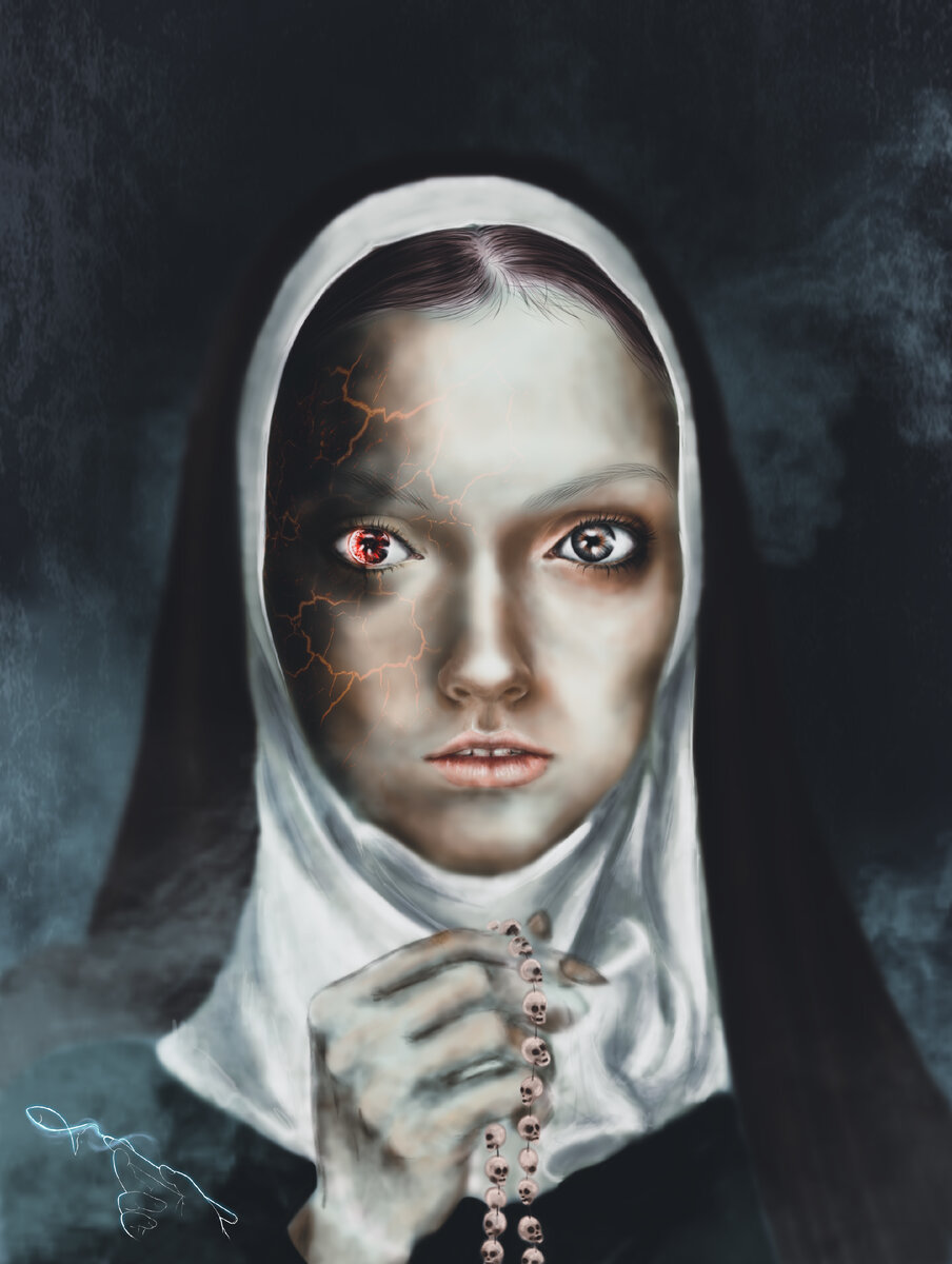 Всем здравствуйте, добро пожаловать на канал "Море идей" Очень давно не делала публикаций, но рисовала много. Сегодня я познакомлю вас со своей работой к стихотворению "Монашка" Автор, Александр Мачихин, написал его после просмотра фильма. Я, признаться, таким жанром не интересуюсь(не люблю ужасы и тому подобное), но пришлось немного и мне подготовиться к работе. Итак, для начала вот то самое произведение: Вонзилась ночь в мои глаза,