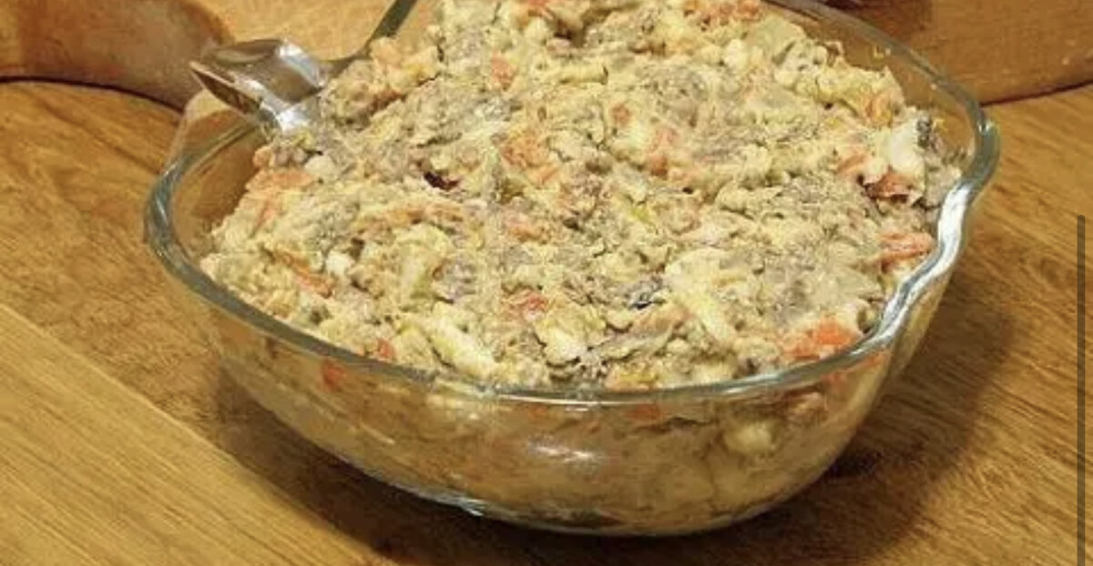 Смешать морковь,лук,печень,кукурузу,огурцы и заправить сметаной или майонезом.