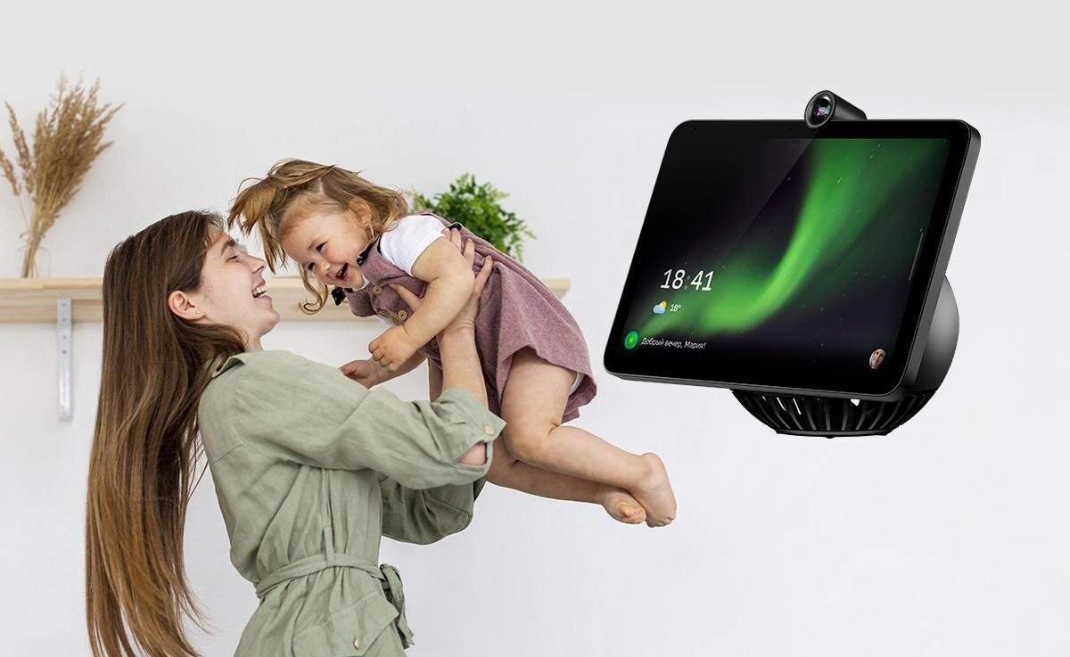 То, что дочь вертится и не сидит на месте, не проблема. Потому что у камеры SberPortal умный фокус, который постоянно держит лицо в кадре, даже когда ребёнок прыгает по комнате.
