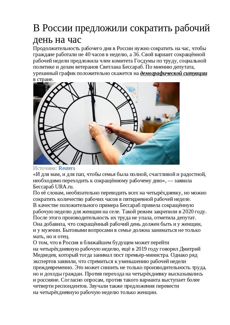 ДЕМОГРАФИЯ УЛУЧШИТСЯ - ЕСЛИ СОКРАТИТЬ РАБОЧИЙ ДЕНЬ...