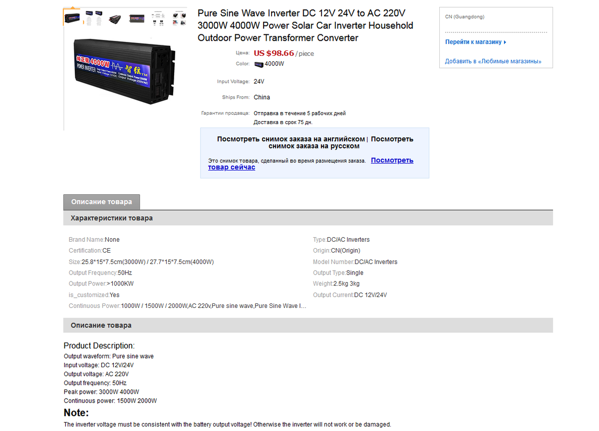 Весной этого года получил с китайского магазина инвертор для солнечной электростанции. Солнечная электростанция состоял из 4 х панелей на 12v*170W, железофосфатных аккумуляторов LiFePO4 на 130 A/h собранных по схеме 8s, и солнечного контроллера SRNE ML2440. По истечению почти полугодовой эксплуатации можно написать о его недостатках и достоинствах. Достоинства инвертора: · Реальная мощность соответствует заявленному. Было запитана стиральная машина, который при режиме нагрева воды потребляет 1700-1800 Вт, инвертор отработал без замечании, правда пришлось выключить остальные потребители во время работы стиральной машины; · чистая синусоида, инвертор работал без замечании со всеми видами потребителей которые были подключены (холодильник, стиральная машина, телевизор, электронаждак, различные зарядные устройства, ноутбук и. т. д.); ·Без проблем запускают холодильники, у меня были подключены 2 холодильника (двух и однокамерные Атланты); · могут работать в круглосуточным режиме; ·в ко
