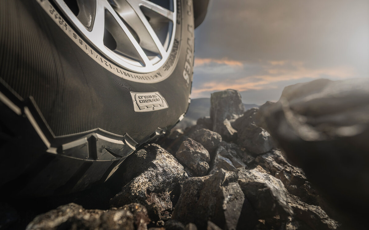 Во-первых, Nokian Outpost AT - это "классический" универсальный рисунок протектора для условий дальних путешествий и относительного бездорожья. Достаточно агрессивные (для шины класса АТ) боковые блоки должны обеспечивать неплохое продольное и поперечное сцепление, а наличие дополнительных блоков на боковинах шины даст дополнительную защиту от боковых порезов, в дополнение к технологии усиления арамидными волокнами, и дополнительное сцепление, особенно при езде по бездорожью на низком давлении.