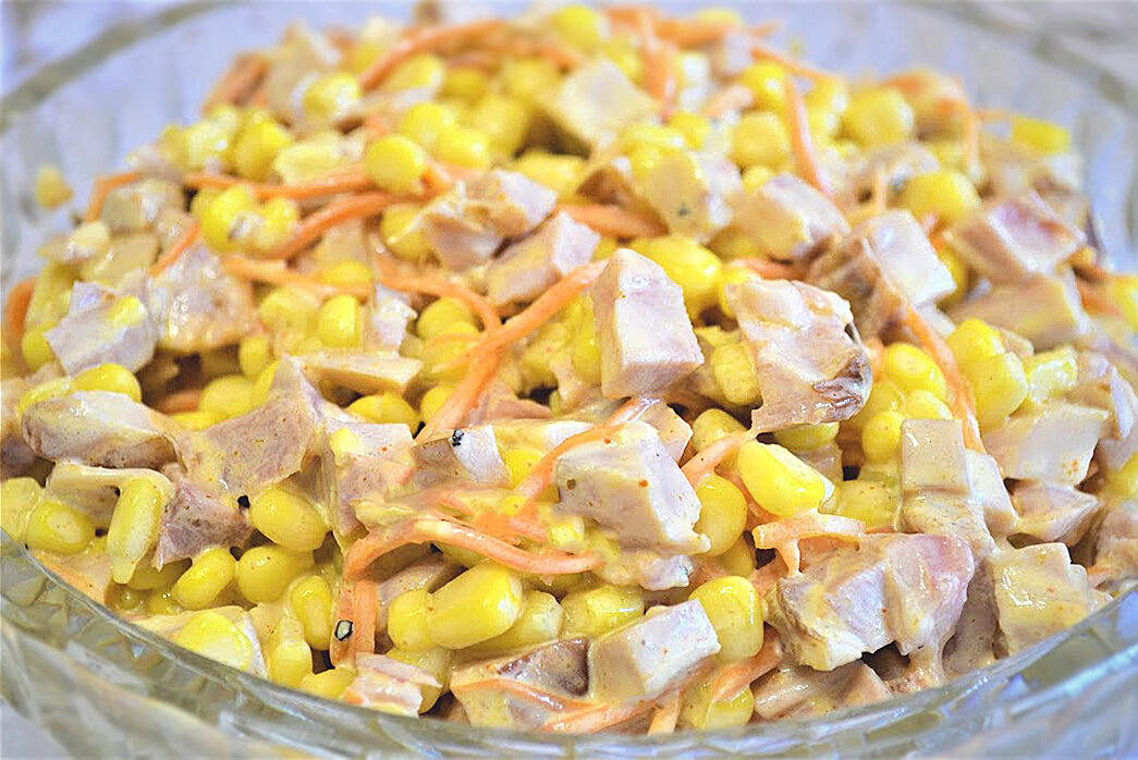 Нежный, ароматный и полезный салат с копченой куриной грудки и корейской морковью пришелся мне по душе своей быстротой и простотой приготовления. Можно приготовить его еще быстрее, если смешать ингредиенты. Можно заменить копченую курицу на вареную или же наоборот. Ингредиенты: