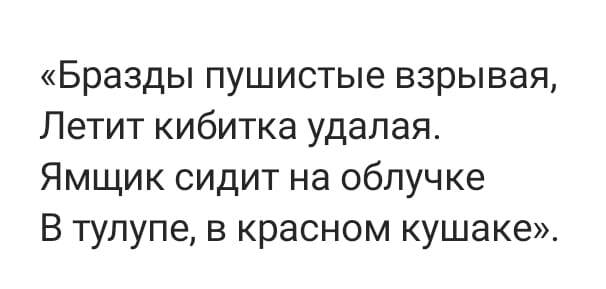 Не думала, что скажу это так, но я сейчас заочно учусь. Мое относительно недавнее увлечение вопросами билингвизма вылилось в то, что я стала студенткой Центра Русского Языка МГУ, где прохожу дистанционный курс «Методика преподавания русского языка как иностранного детям». Сегодня я слушала вебинар, где разбирались вопросы выбора и подготовки текста для работы с детьми разного возраста и уровня владения языком, а там рассказали интереснейшую историю! Все же мы помним, как читали в школе «Евгений Онегин» А.С. Пушкина? Признаться честно, что я так с удовольствием это делала. :) Так вот, современным детям младшего школьного возраста (носителям русского языка, между прочим) дали задачу нарисовать картину к следующему отрывку: Что из этого получилось, смотрите: далее Слово «бразды» дети интерпретировали как название какого-то животного, ну они же пушистые! )) Идём по тексту дальше и понимаем, что «браздов» взрывают! Да не кто-то там, а удалая кибитка, которая летит. Кибитку дети изобразили