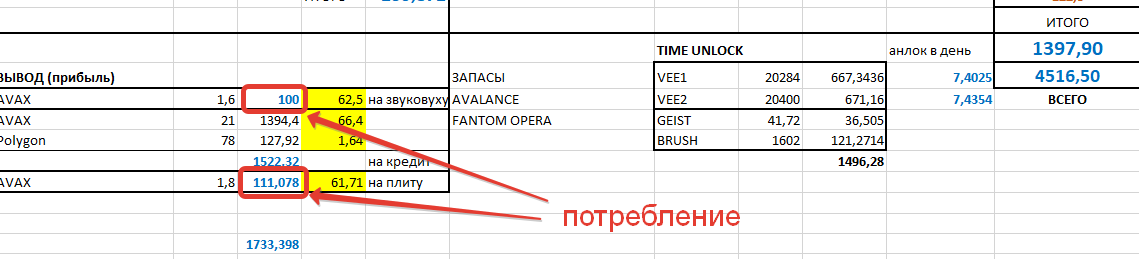 По фармингу я сделал табличку выводов и расходов, пока она не дотягивает до 25%, но это пока: