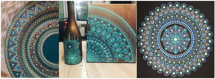 Продолжая тему про точечную живопись, хочу сразу предупредить - не стоит верить "умельцам" на ускоренных роликах, демонстрирующим, как за пару минут появляется немыслимо красивый и сложный рисунок. За этой легкостью стоит, как минимум, подготовительная разметка. Даже простейшие, на первый взгляд орнаменты, требуют предварительной подготовки. Как минимум, основные направления линий желательно нанести. Иначе, орнамент сползет. Тренироваться стоит на плоских поверхностях. Начинать, с простейших орнаментов. От простого к сложному. Рекомендую учиться на гуаши - набивать руку. Найти удобный для работы, лично Вам, инструмент. И только после этого, переходить к тюбикам с "контурами". Не стоит тратить деньги на "профессиональный" инструмент. Используем все, что под руку попало. Повторюсь - гораздо больше внимания стоит уделить разметке. Только в этом случае, результат гарантирован. Сложные орнаменты, это очень красиво, но и в простых орнаментах, повторяющийся элемент, сделает свое дело. Прос