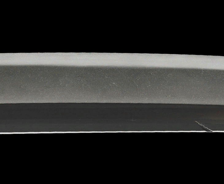 От диванных экспертов по японской катане часто можно услышать, что японские клинки-де плохие - от ударов гнутся, ломаются, отбить или парировать удар ими невозможно (уточню - здесь "отбить" и "парировать" - два разных понятия. Первое - сильный встречный удар в меч, отбрасывающий его, второе - просто блок, парад клинком). Ой ли? В таком случае предлагаю полюбоваться на стопроцентно боевые японские клинки разных периодов - от Средневековья до Второй мировой, хранящие следы сугубо практического, утилитарного применения. Проще говоря - боя. Это клинок катаны Бишу-но-куни Аое. Датирован 1330 годом. Обух внизу. На обухе - глубокая зарубка, оставленная мечом противника. Хозяин катаны парировал удар обухом, чтобы не портить лезвие (возможно, имел место батман обухом). Поскольку обух, как правило, закаливается в меньшей степени, вражеский меч оставил глубокий след - кири-коми. Меч той же эпохи, работы Исиды Масамунэ: Глубокий скол - также на обухе. Судя по углу и месту расположения (в слабой ча