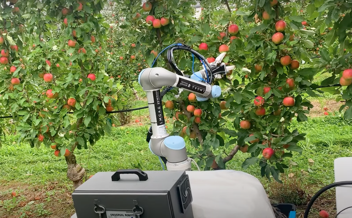 В этом году исследователи проводят полевые испытания своего робота-сборщика яблок. Инженеры сообщают, что он повредил менее 6% «улова», случайно удалив стебли яблок (хотя такие плоды все еще могут продаваться некоторыми розничными торговцами).