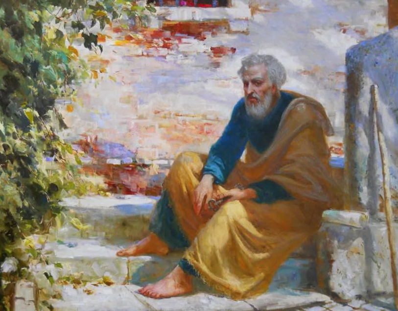 Во время Тайной вечери, когда Петр в порыве любви к Иисусу говорил, что готов ради Него идти в темницу и на смерть, Христос отвечал: «Говорю тебе, Петр, не пропоет петух сегодня, как ты трижды отречешься, что знаешь Меня». Петр не поверил этим словам. Но затем, когда Иисус был захвачен стражниками и отведен на судилище, Петр в смущении и растерянности последовал за Ним к дому первосвященника. Слуги развели огонь и сели вместе. Петр тоже присел между ними.