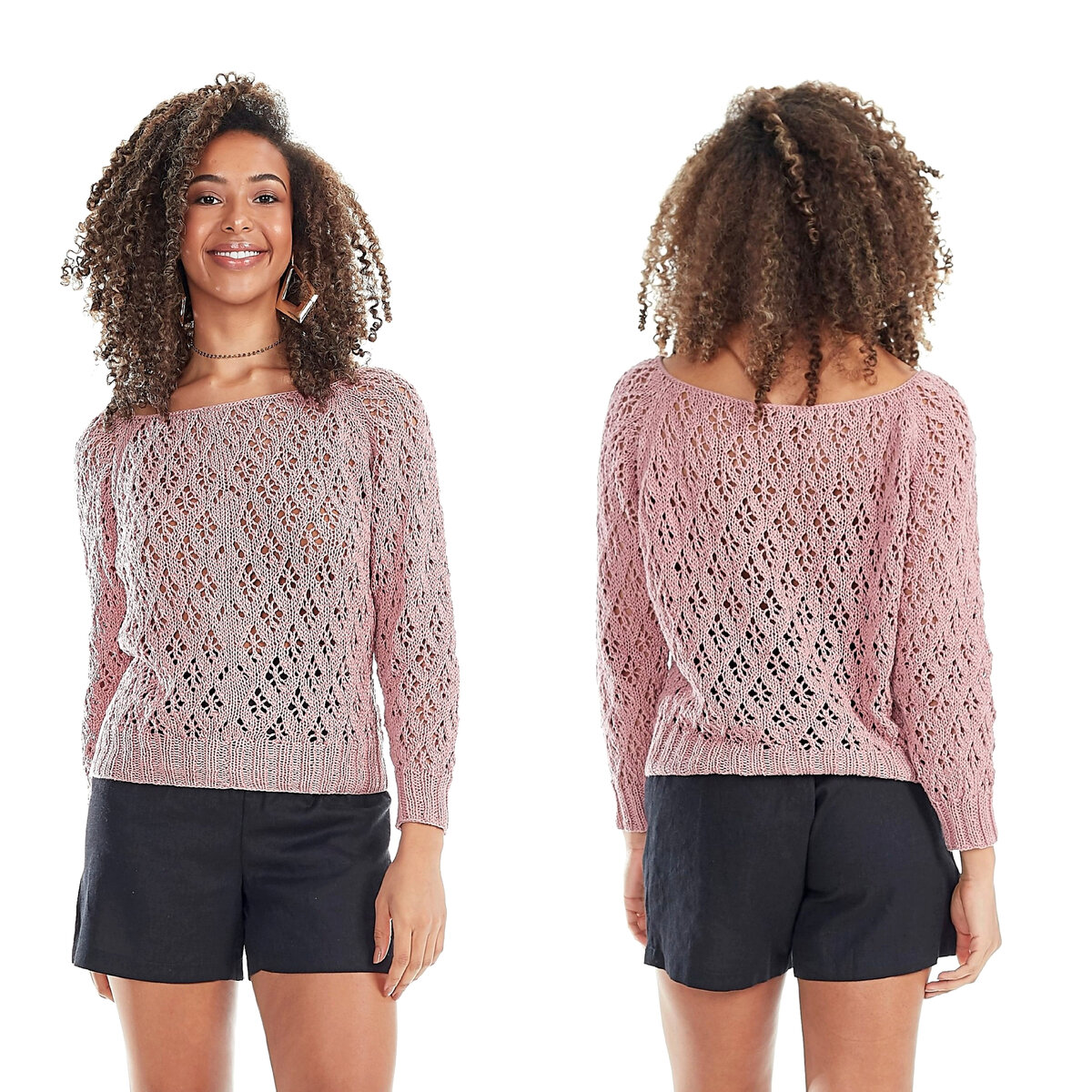 Этот нежный розовый джемпер не оставит равнодушной ни одну рукодельницу — приятный, неброский цвет, интересный ажурный узор и очень простой фасон-реглан. ☺