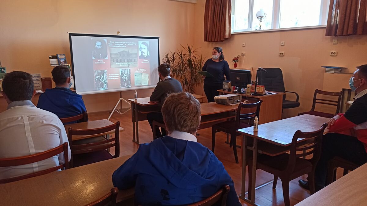 Центральной городской библиотекой совместно с ГБПОУ «Ессентукским центром реабилитации инвалидов и лиц с ограниченными возможностями здоровья» была проведена слайд-лекция к 200-летию со дня рождения Ф. М. Достоевского «Самый трудный в мире классик». Присутствовали учащиеся данного учебного заведения. В ходе мероприятия прозвучал интересный рассказ о судьбе Фёдора Михайловича Достоевского, которая изобиловала драмами. Участник революционного кружка Петрашевского, он был осужден на «смертную казнь расстрелянием». Но как оказалось, казнь была лишь представлением: в последний момент её заменили ссылкой и каторгой с лишением «всех прав состояния». Ребята узнали, что писатель пережил четыре года каторги, разжалование в солдаты, запрещение «въезда в губернии С.-Петербургскую и Московскую и жительства в обеих столицах», вечную нехватку денег, тяжёлую болезнь, любовь и, наконец, смерть в 1881 году. В интересной и доступной форме ребята смогли подробнее познакомиться с главными вехами «исследова