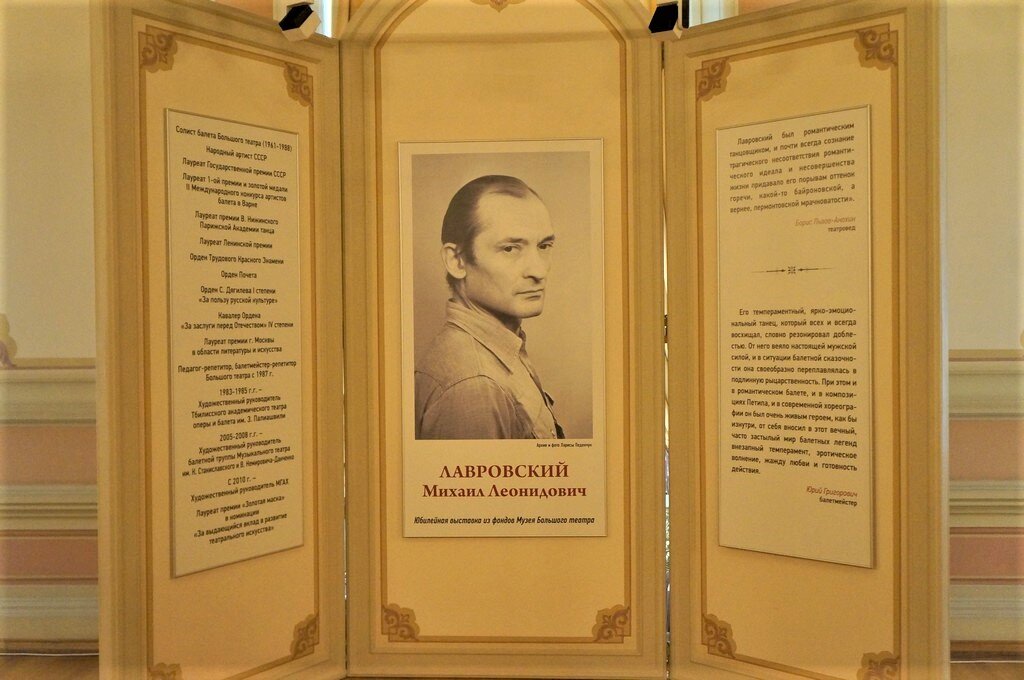 Сегодня солисту Большого театра, народному артисту СССР, Лауреату Государственной премии СССР, Лауреату Ленинской премии, Кавалеру Ордена "За заслуги перед Отечеством" IV степени и множества других наград, педагогу-репетитору Большого театра России, художественному руководителю МГАХ Михаилу Леонидовичу Лавровскому - 80!!! В театре к его юбилею в одном из фойе театра открыта юбилейная выставка. Вчера, когда я заглянула сюда, экспозиция еще монтировалась. Но был включен яркий свет. Сегодня вечером, когда на балет "Спартак" в честь юбиляра придут зрители он тоже будет гореть. А мы, увы, прогуляемся по выставке в легком полумраке ))) На выставке представлены фотографии разных лет. Зигфрид из "Лебединого озера", Альберт в "Жизели", Иван Грозный и Спартак в одноименных балетах и многие другие исполненные им роли. На выставке можно увидеть костюмы из балетов "Жизель" и "Ромео и Джульетта". К сожалению, как я уже писала, эту выставку смогут увидеть лишь те, кто придет в театр сегодня, а т