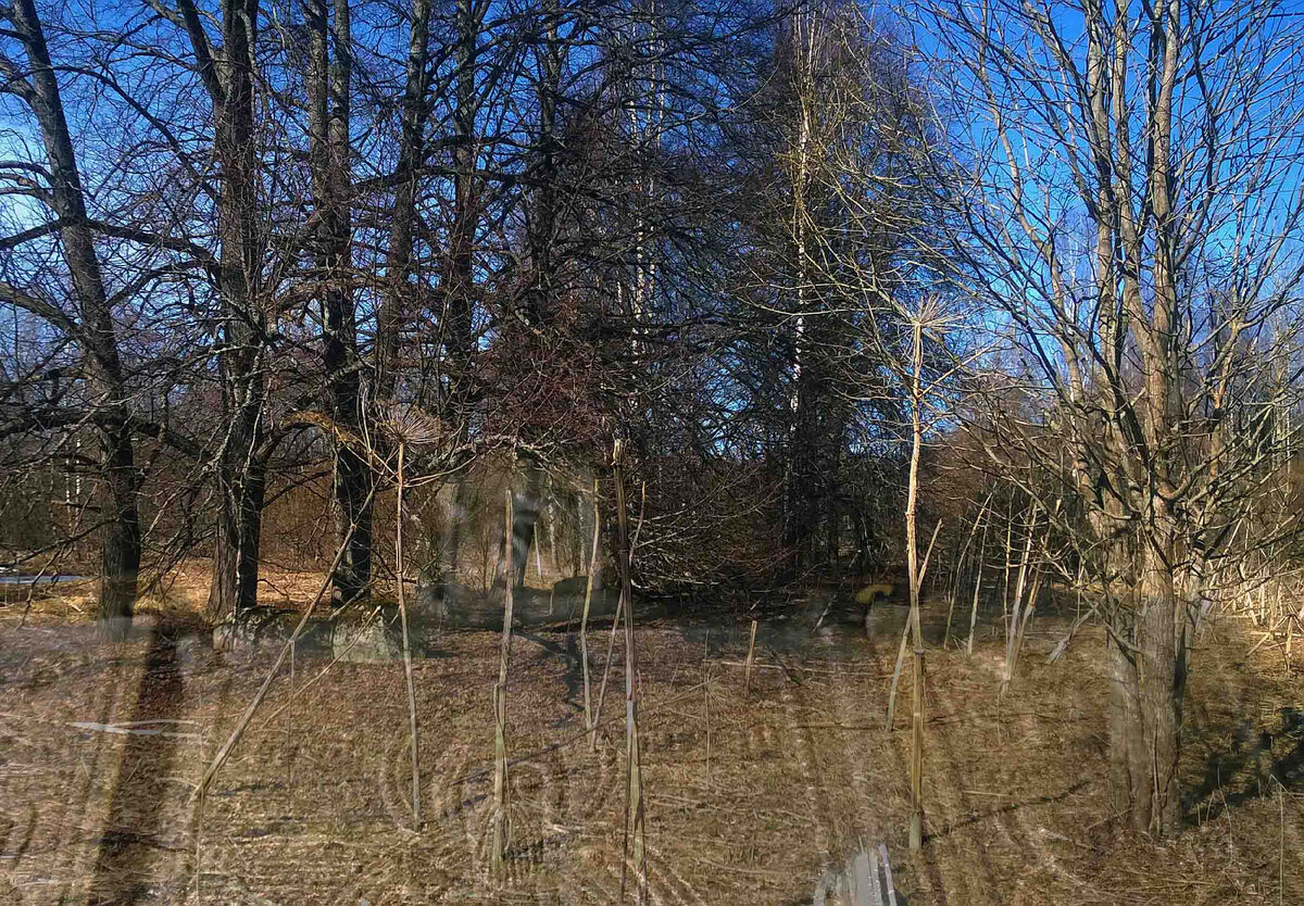 Бобры соорудили платину и речка разлилась очень сильно. Когда они успели это сделать я не знаю, но запруда получилась большой, и перейти теперь речку которая была раньше как ручей, стало очень проблематично. Ровно год назад этой запруды не было. Пришлось идти прямо по бобровой платине, что было маленьким экстримом. Всё было очень мокрым и скользким, пару раз ноги соскальзывали, но воду в сапог не зачёрпывал. Не очень хотелось искупаться в холодной воде в самом начале экспедиции. Но всё обошлось друзья и я благополучно очутился на другом берегу речки. Сразу направился к фундаментам которые остались от домов. Деревня не большая была, 10 дворов всего. Осталась красивая липовая аллея которая вела к берегу речки и разделяла деревню пополам. Большие красивые липы, наверное жители собирали липовый мёд. Обойдя один из фундаментов и вдоволь нарыл железа и разного шмурдяка, я решил сменить позицию и пойтить по аллеи, вначале в одну сторону, затем обратно. Скажу, что здесь железа оказалось не