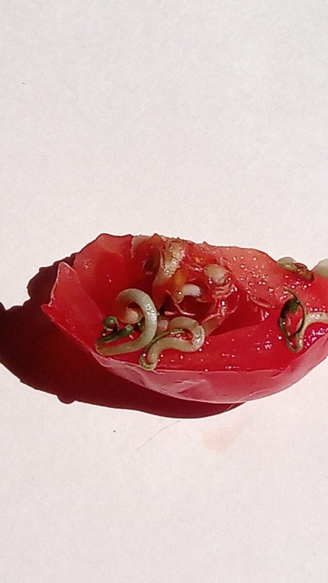 Вот такое необычное явление: лежал, лежал ломтик помидора, да и решил прорасти. Листайте галерею. На самом деле, так и должно быть, ведь мякоть многих плодов является отличным субстратом для прорастания семян.
