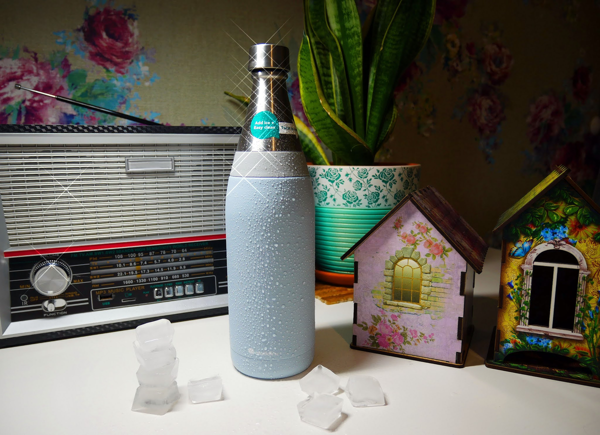 Люблю качественные вещи, которыми приятно пользоваться и которые прослужат долгие годы. Бутылка для воды и напитков ALADDIN Fresco именно такая вещь. Aladdin Fresco сделана из нержавеющей стали Thermavac™ и имеет потрясающе красивый голубой цвет. В серии Aladdin Fresco есть еще несколько не менее красивых цветовых решений. Эта герметичная бутылка с двустенной вакуумной изоляцией. Специальная конструкция бутылки позволит сохранить холодную воду до 10 часов, напитки со льдом до 18 часов. Бутылка сделана из экологически чистых материалов, без применения бисфенола-А. Подойдет для применения в посудомоечной машине. Нижняя часть бутылки Aladdin Fresco - это приятная на ощупь металлическая, порошковая поверхность. Верхняя часть из матового, стального покрытия. Верхняя часть имеет специальную удобную конструкцию. Для питья можно просто открывать верхнюю пробку. Для мытья и чтобы иметь доступ к широкой горловине можно откручивать нижнюю часть. Очень удобно хранить в это