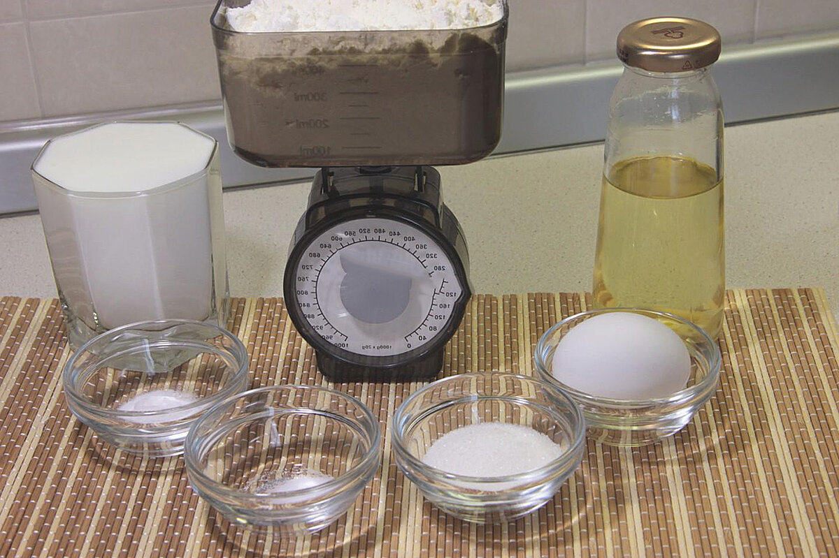 Растительное масло 3 ст.л. ПОШАГОВОЕ ПРИГОТОВЛЕНИЕ ШАГ 1: Приготовьте все необходимое для приготовления. Заранее достать из холодильника кефир и яйцо ШАГ 2: Добавить к яйцу сахар и соль. Нужно хорошо перемешать, чтобы сахар с солью растворились. ШАГ 3: На плите или в микроволновке следует слегка подогреть кефир до первого «булька» ШАГ 4: Постепенно в яичную смесь, постоянно помешивая нужно влить тёплый кефир. ШАГ 5: Просеять отмеренное количество муки в отдельную миску. ШАГ 6: Затем добавить к жидкой смеси небольшими порциями муку и размешивать венчиком во всех направлениях, пока тесто не станет