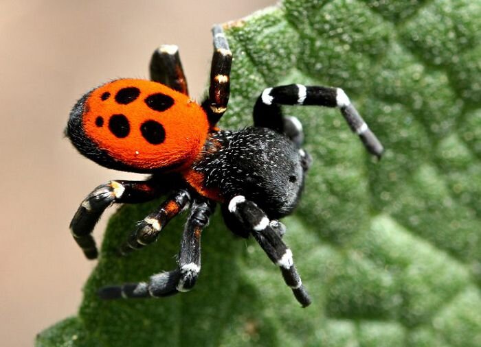 Эрезус – (латинское название «Eresus niger Petagna»)это вид пауков, принадлежащих отряду Пауки и семейству Эрезиды. Как выглядит Пауки эрезус – небольшие существа, длина тела которых в среднем составляет 9 миллиметров. Самые крупные экземпляры вырастают до 16 миллиметров, но это большая редкость. Самцы и самки эрезус окрашены по-разному: брюшко самца имеет яркую красную или оранжевую окраску с крупными черными пятнами; брюшко самки имеет ровную черную окраску без пятен. Голова и грудь самок черная с множеством не очень длинных волосков. Ноги у всех особей очень мощные, толстые, покрытые густыми волосками. У пауков эрезус 8 глаз, которые распределены в три ряда. Одна пара глаз практически вдвое больше остальных. Образ жизни Эрезус строит себе подземные убежища, вырывая довольно глубокие норы или же строит гнезда под большими камнями. Гнездо представляет собой трубку, изготовленную из паутины, которая полностью скрыта под землей. С помощью нескольких сигнальных нитей трубка соединяет