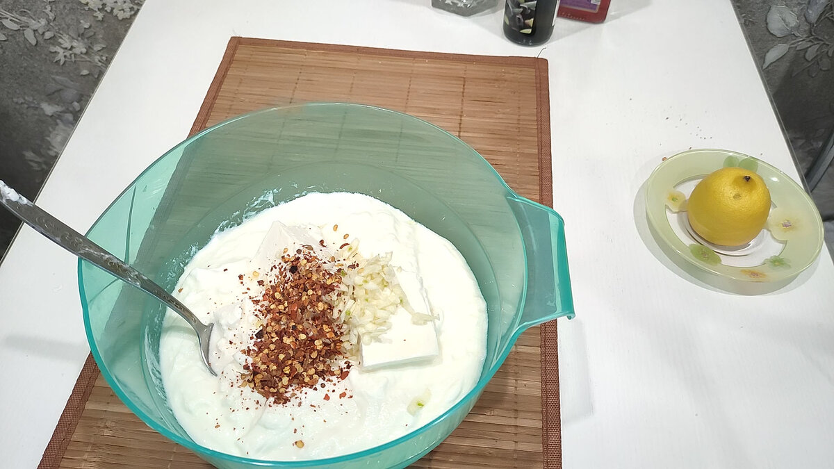 Сегодня познакомлю вас с нашим любимым семейным соусом, который идеально подходит к мясным блюдам, запеченным овощам. Очень вкусно с поджаренным хлебом. Готовить его быстро и очень просто. Уверена, что вы будете его часто готовить. А самое главное, что он полезен для здоровья! Для приготовления соуса нам понадобятся: Катык - 500 мл. Сыр фета - 200 гр. Чеснок - 3 зубчика Мята свежая и укроп Перец чили - по вкусу (у меня 1 столовая ложка хлопьев перца чили) Виноградный уксус - 1 ст. ложка Оливковое масло - 1 ст. ложка В емкость выкладываем катык, сыр фета, нарезанный чеснок, перец чили, нарезанную зелень. Все ингредиенты пробиваем блендером до однородности. Добавляем виноградный уксус и оливковое масло. Перемешиваем и убираем в холодильник минимум на 3 часа, чтобы все ароматы перемешались. Соус загустеет немного. Наш соус готов и его можно подавать к столу. Всем приятного аппетита, спасибо за просмотр! #еда #соусы #кухня #катык