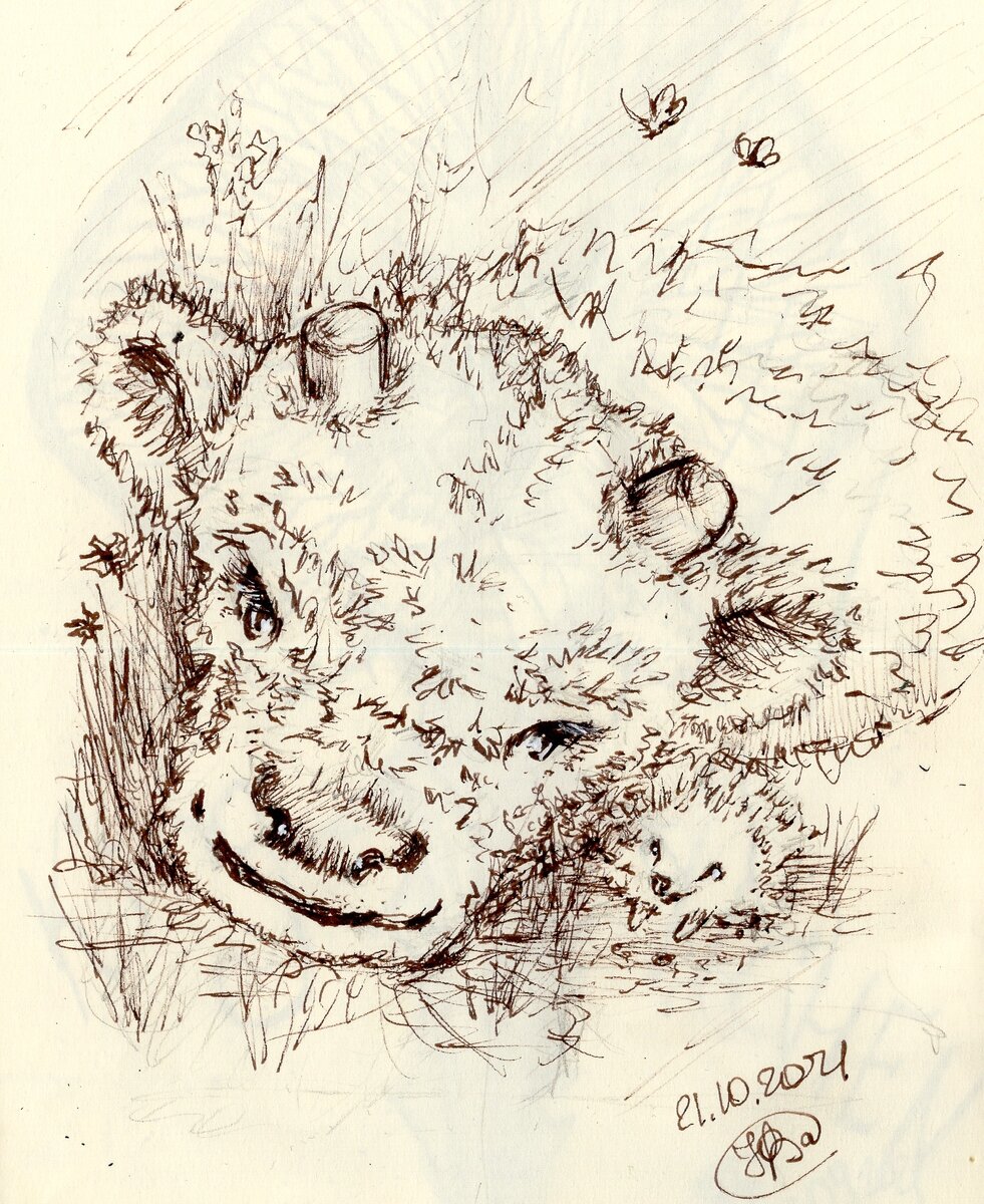 Сейчас, когда делаю статью для дзена, кажется просто невероятным, что уже 29 октября, а я продолжаю рисовать по двум спискам на арт-марафон #inktober2021 . Но это факт. Итак: 21/31 - #пушистый . И у меня получилась вот такая парочка. Бычок и ежик. По альтернативному списку следующие слова: #пушистый и #призрачный . И следующий кусочек текста: