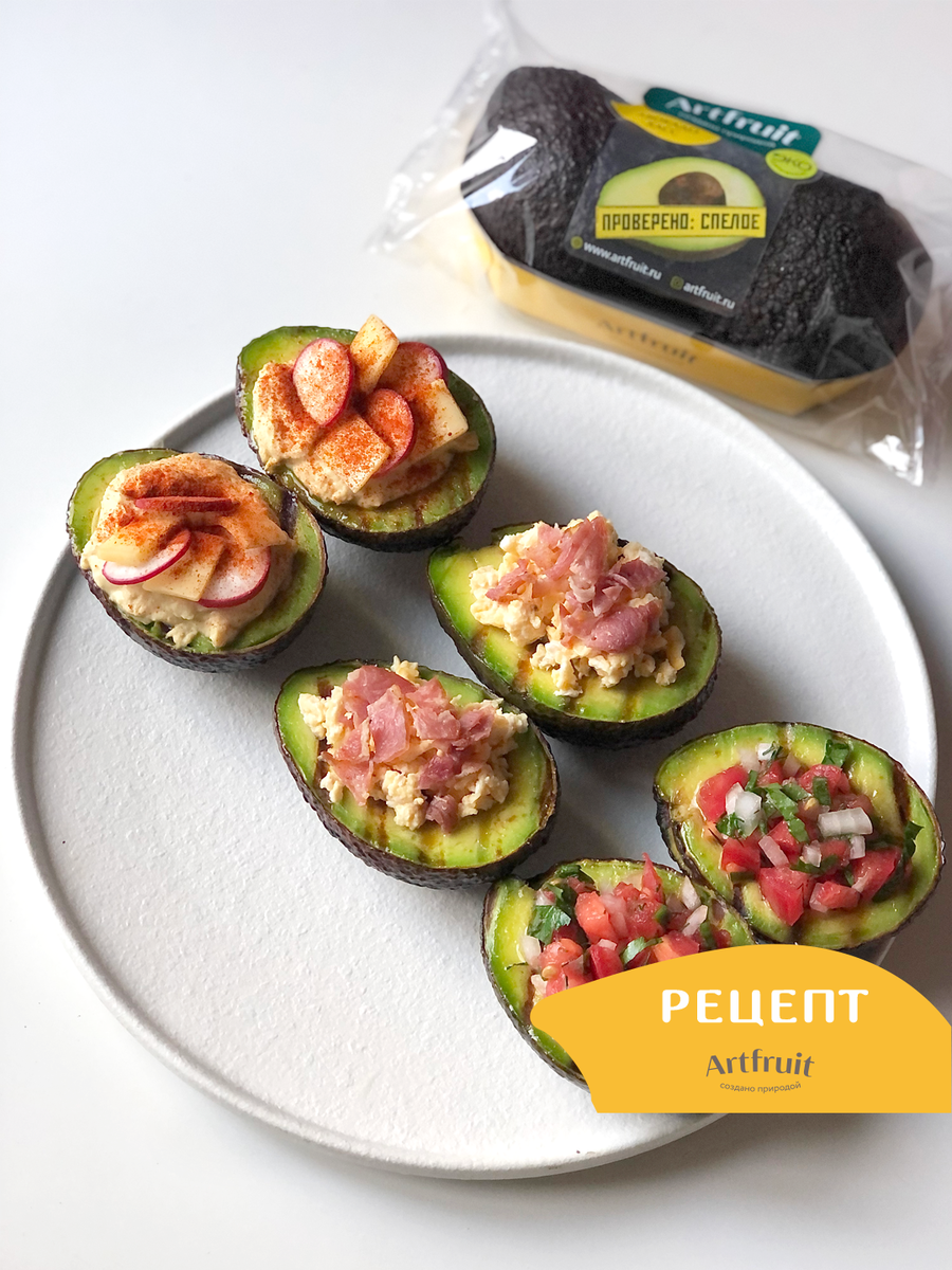 Сытный, питательный и полезный 💪 Авокадо-ужин на гриле! С разными, к тому же, начинками. Секрет успеха этого блюда — правильное авокадо. То есть от Artfruit!