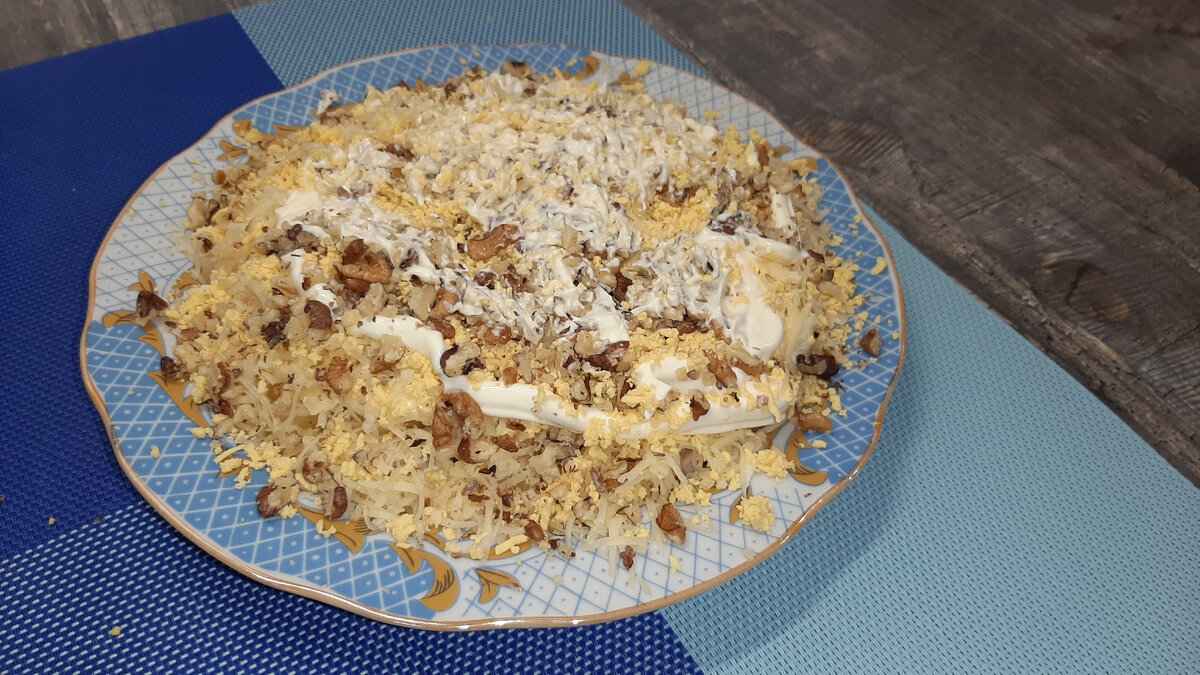 Смело готовьте этот салат на любой праздник,он очень вкусный,не останется ни крошки. Выкладывается салат слоями: 1. Белки на мелкой тёрке. Майонез 2. Вареная курица,можно кубиками,я больше люблю рваные кусочки. Майонез 3. Ананас кубиками Майонез 4. Сыр на мелкую терку 5.Желтки на мелкую тёрку Майонез сеточкой 6. Грецкие орехи измельчить и сверху посыпать. Майонезом не обязательно промазывать каждый слой,достаточно сделать сеточку. 🌲Кстати,как я готовлю это блюдо пошагово вы можете посмотреть в видео в предыдущем посте☝☝☝ Ингредиенты: -2 варёных куриных бедра - 3-4 варёных яйца - 50 гр сыра твёрдых сортов - Майонез - Ананас - грецкие орехи для украшения 💗Поделитесь с друзьями в свою социальную сеть,возможно именно этот рецепт они сейчас ищут! 💘 Напишите в комментариях что нибудь приятное,ваши добрые слова - моя мотивация! Я Вас 💖 Приятного аппетита!! ➕Кстати кто еще не подписался,подписывайтесь я буду очень рада.