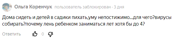 Я помню, как в статье, где я сообщила что ребёнок пойдёт скоро в садик начали писать, что она маленькая, у нее плохой анализ крови, ей рано и т.д.