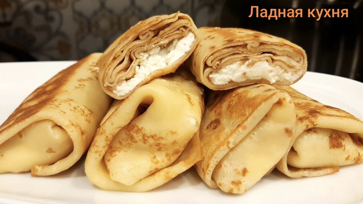 Блинчики с творогом - пальчики оближешь. Тонкие блины и нежная, сочная начинка из творога. Самый лучший рецепт блинов на молоке, они тонкие получаются и вкусные, никогда не рвутся и легко снимаются со сковороды. В такие блины можно завернуть любую начинку, не только творожную. Удачный и простой рецепт и блинов, и начинки. В конце статьи есть короткий видео рецепт блинов с творогом. Список нужных продуктов для приготовления смотрите в первом комментарии Готовлю тесто. В миску вбиваю 2 яйца. Добавляю сахар и соль. Вливаю 250 мл теплого молока и перемешиваю венчиком. Добавляю 180 грамм муки, перемешиваю, чтобы не было комочков. Вливаю еще 250 мл молока и еще раз перемешиваю. Тесто получается жидкое, хочется еще муки добавить, но не нужно, проверено много раз. Оставляю тесто на 15 минут. Перед тем как выпекать блины добавляю в тесто 2 ст. л растительного масла. Перемешиваю, чтобы масло хорошо распределилось в тесте. Нагреваю сковороду и смазываю ее маслом только перед выпечкой первого блин