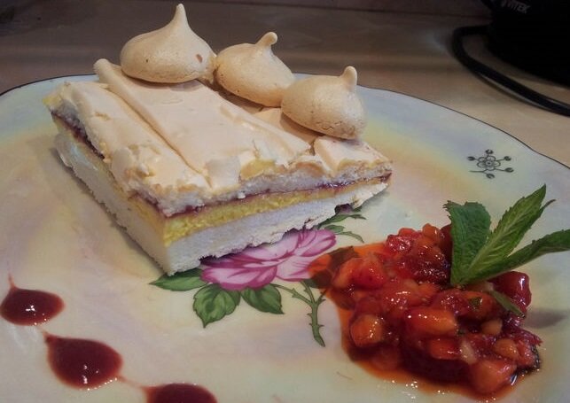 Меренги - это воздушный десерт из взбитого яичного белка. Он может выступать в качестве самостоятельного лакомства, и им же можно украшать готовую выпечку. Меренговый торт получается невероятно вкусным с кремом маскарпоне. Вам понадобится Инструкция 1 Смешайте яичные белки с щепоткой соли, соком из 1 лимона, 220 г сахарной пудры, все тщательно взбейте. На пергаменте начертите 2 прямоугольника одинакового размера. Равномерно распределите белковую массу на 2 прямоугольника (примерно 3 ложки массы оставьте для маленьких безе, которые будут украшать торт). Выпекайте меренги при 150 градусах 40 минут. 2 Приготовьте винную прослойку. Порежьте 100 г клубники кусочками. Выложите клубнику в кастрюлю вместе с земляникой, залейте красным вином, поставьте на огонь. Добавьте ложку сахарной пудры, гвоздику, корицу, Амаретто. Варите 30-40 минут на слабом огне, потом протрите через сито, уберите остывать в холодильник. 3 Приготовьте крем маскарпоне. Сбейте желток с сахарной пудрой - получится светлая