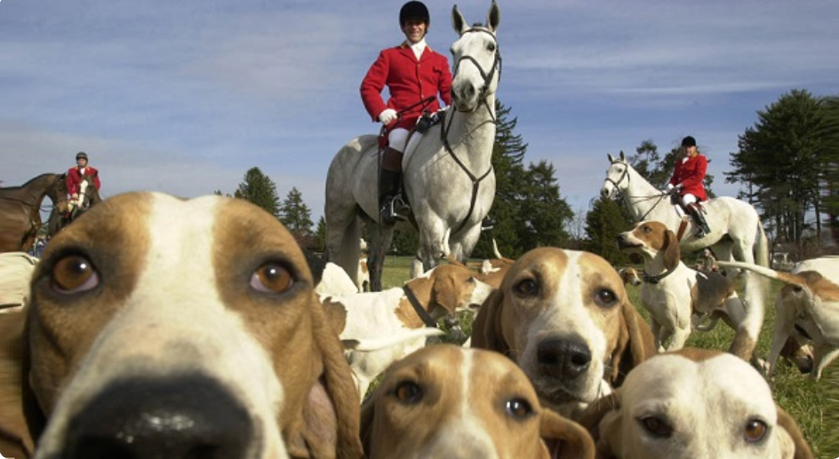 Внешне напоминающий крупного бигля, английский фоксхаунд – гончая, используемая в традиционной английской лисьей охоте.