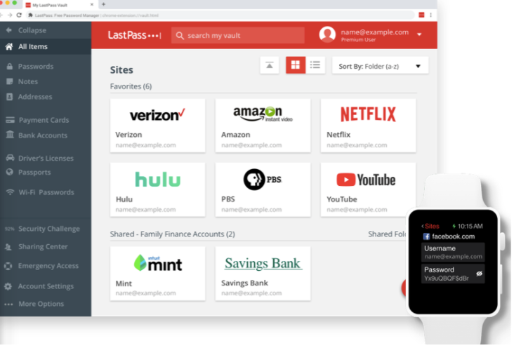 Менеджер паролей для Windows и macOS, который регулярно попадает в подобные топы. Возможности LastPass практически не отличаются от таковых в 1Password. Здесь тоже есть: Ключевое преимущество LastPass над конкурентами – цена. Этот менеджер распространяется бесплатно в своей базовой версии. Да, есть и Premium с дополнительными возможностями, но обезопасить свою коллекцию паролей можно и без нее. Premium-подписка позволяет хранить в зашифрованном хранилище LastPass файлы, получать приоритетную поддержку, делиться паролями сразу с несколькими пользователями и т.п.