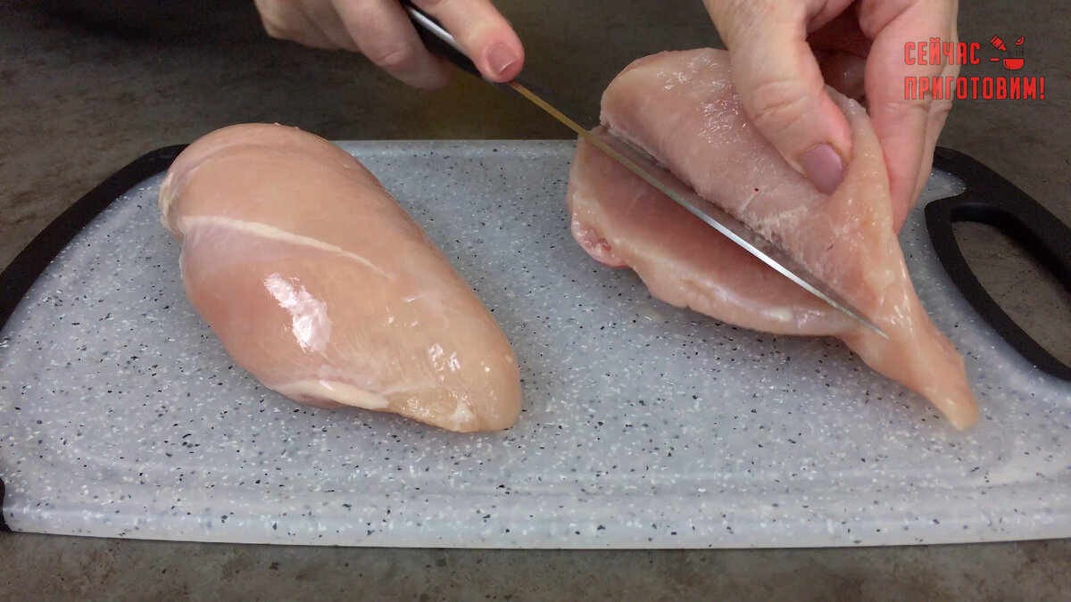 Если вы любите блюда из куриного филе, но не любите или нет возможности долго стоять у плиты, то этот рецепт именно для вас! Фаршированная куриная грудка получается очень сочной, ароматной и очень вкусной. Идеально подойдёт для обеда, ужина или для праздничного стола! Давайте готовить! Список продуктов и короткий видео-рецепт будет в конце статьи. Берем куриное филе и делаем разрезы. Теперь готовим маринад. В миске соединяем куркуму, паприку, сушеный чеснок, соль, перец. Добавляем зерновую горчицу, соевый соус, оливковое масло и перемешиваем. Смазываем грудки. Одну луковицу нарезаем и обжариваем на растительном масле. Добавляем замороженные шампиньоны и жарим до испарения жидкости. Перекладываем лук с грибами в миску. Натертый сыр добавляем в миску и перемешиваем. Куриное филе перекладываем в форму и заполняем "кармашки" начинкой. Смазываем оставшимся маринадом. Запекаем в духовке 20 минут при 200°С. Куриные грудки готовы! Вот такая аппетитная, очень нежная, вкусная курочка получилась.