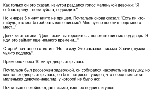 - "Это почтальон. Вам письмо". - раздался громкий голос за дверью.