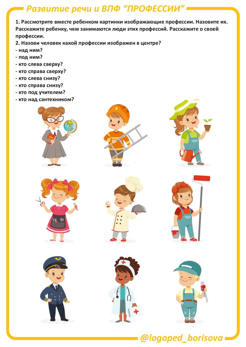 Поговорите с ребёнком о профессиях. Расскажите о профессиях своих родных и близких. Побеседуйте о качествах, особенностях характера, которые требуются для каждой конкретной профессии. Ответь на вопросы: