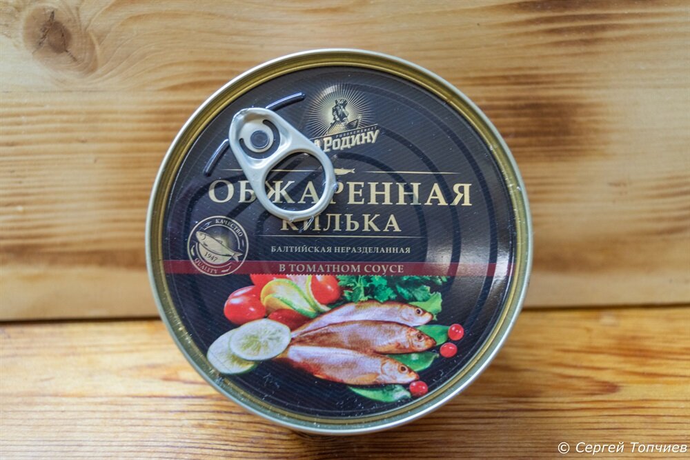 За Родину! За кильку неразделанную и обжаренную. Надписи - изготовлено из замороженного сырья нет