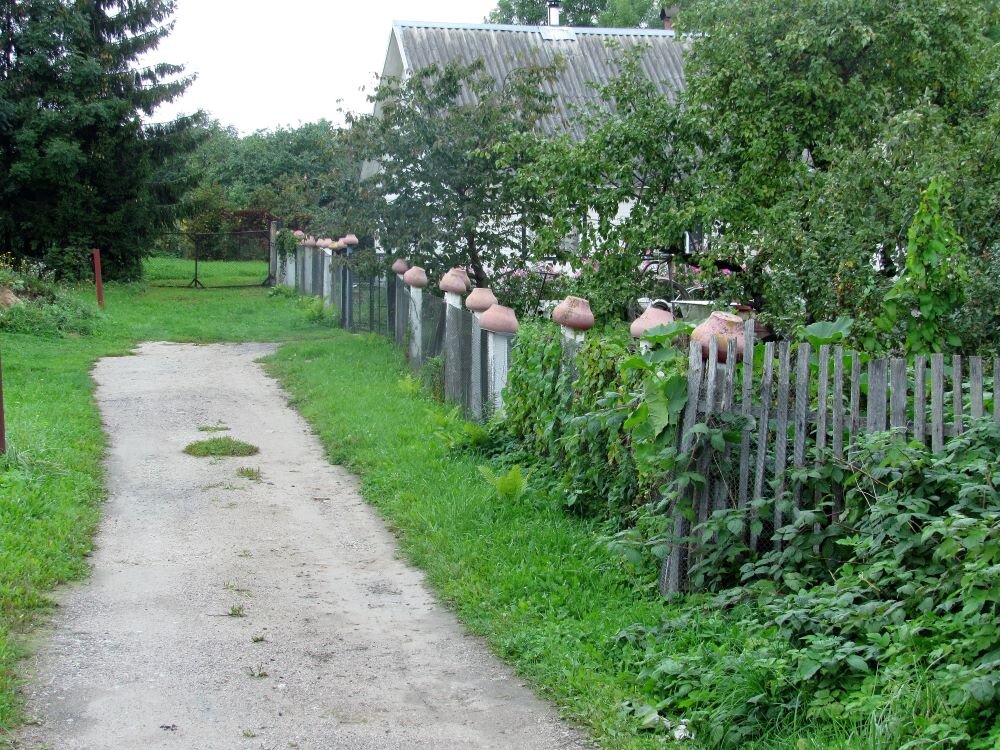 Наверное, я неправильный турист. Все люди как люди: шумно следуют толпой за гидом, послушно смотрят туда куда велят путеводители. Мне же хочется постоять и послушать, что меня окружает. Во второй день нас из Пскова повезли в Изборск и Печоры. Если в Печорах я был лет 40 тому назад и они меня еще в тот раз поразили, то об Изборске я не знал ничего. Абсолютно. А оказалось это и не город, а деревня. Только очень старая деревня. Изборск был упомянут в летописи в 862 году, а значит, он существовал еще и до этого. Это, действительно, деревня, стоит сойти с автобуса и направиться к крепости. Хорошо быть высоким: за забором можно увидеть много интересного: Перед крепостью привели в божеский вид деревенскую улицу. По ней бы туристам побродить (заодно и подкормить жителей покупкой сувениров). Ан нет! Наш гид крепко держала группу в узде - все послушно промчались мимо и по деревне я ходил совершенно один. Я думал, собака не живая, но она моргала глазами и дышала! Подход к маленькой церкви около