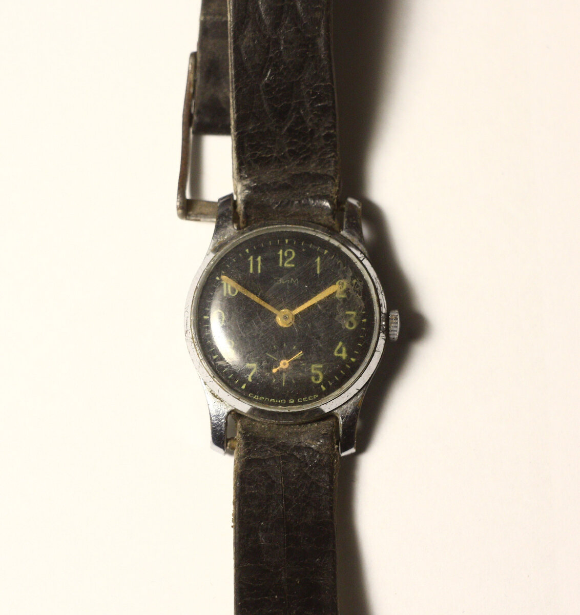 Доброго времени суток! Вот отдали на запчасти такие часики. Я решил их оставить себе, сколько лет они отслужили верой и правдой своим бывшим владельцам? Часы небольшого размера - скорее женские, имеют классический дизайн напоминают "милитари" времен второй мировой. Кожаный ремешок ширина - 16 мм. Снял ремешок и ушки. Задняя крышка без обозначений. Это интересно - на обратной стороне крышки нацарапано "ЛЮДА + СЕРГЕЙ", вот что двигало владельцем когда он наносил эту надпись? Снял ободок со стеклом, циферблат и стрелки в нормальном состоянии. Заводная головка скорее всего уже менялась, потому что не соответствует общему состоянию часов - слишком хорошо сохранилась. Надпись "Сделано в СССР" тоже присутствует. Снял стрелки: минутную и секундную, часовую наверное не буду снимать - она снимется вместе с циферблатом. Чтобы извлечь часы из корпуса сныл заводной вал и открутил 2 винта. Вынул часы из корпуса и снял циферблат. Полностью разобрал механизм для дальнейшей чистки. Часы кстати на ходу