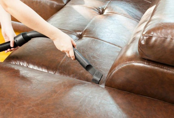 Пыль с кожаного дивана нужно удалять пылесосом со специальной насадкой.
