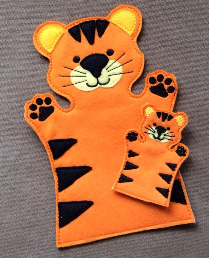 Всем доброго времени суток! Впереди новогодние праздники и символ года тигр, предлагаю сшить к праздникам вот таких забавных тигрят, детям они точно понравятся. Таких тигрят можно использовать, как игрушки для детей, а также повесить на елочку или подарить в качестве сувенира. А понадобится ферт, нитки и маленькие бусинки для глазок а также терпение. Сшить таких тигрят не сложно, мелкие детали, такие как глазки, ротик, носик, можно просто вышить нитками. Предлагаю несколько вариантов тигрят из фетра. Вдохновляйтесь! Тигрята - игрушки на руку и палец. Каждый тигренок состоит из двух деталей. Большой тигренок на руку, а маленький - на палец. С такими игрушками можно отлично поиграть с детьми. Разнообразные тигрята. Простой тигренок. Сшить такого тигренка очень просто, в данном случае шьется только голова, просто, интересно и отличный новогодний декор. Вот такие тигрята из фетра с выкройками. В