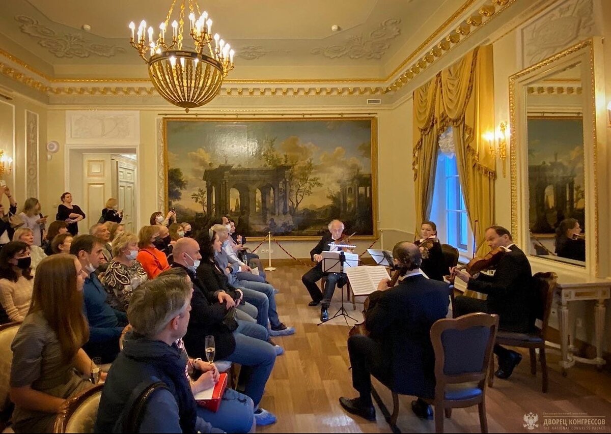Не так давно Государственный комплекс "Дворец конгрессов" представил новый формат экскурсий, включающий в себя концерт классической музыки. 23 октября гости дворца посетили обзорную экскурсию "Возрождённый замысел великого Петра", на которой познакомились с парадными залами и гостиными Константиновского дворца под увлекательный рассказ экскурсовода об истории и современности комплекса.