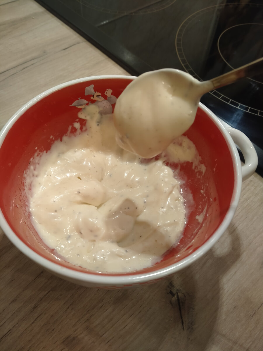 Сейчас мы приготовим домашний майонез, который в разы вкуснее покупного майонеза. Для этого вам нужно: Также можете добавить немного уксуса чтобы он дольше хранился, но такой майонез лучше применять как сделали ,так как спустя даже день он теряет свой насыщенный вкус. Загружаем все ингредиенты в миску. Вставляем блендер. Но важный момент!!! Не поднимаем блендер пока не увидим майонез! Как только увидите, что майонез начинает проявляться, можете двигать блендер. Продолжаем блендерить, пока не образуется однородная масса. Вот и всё, суперский домашний майонез готов. На салат, в качестве обмазки мяса, да просто на бутеры будет очень вкусно! Всем приятного аппетита и до скорого!!! В следующей статье опишу вам процесс приготовления божественной курочки с применением этого майонеза.