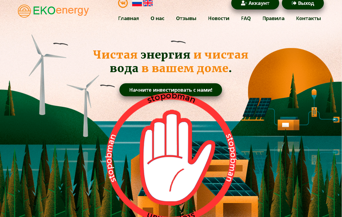 Финансовые пирамиды старое явление, знакомое повальному большинству людей. Однако остались мошенники продолжающие создавать пирамиды чтобы люди теряли деньги вкладываясь в них. Таким проектом является Ekoenergy. Сайт красивая картинка обещающая золотые горы благодаря инвестициям в возобновляемую энергию. Документов и других подтверждений, что ваши средства инвестируются в энергию нет, кроме слов создателя сайта. Проекту восемь дней, заявляется, компания стремиться занять первенство в нише возобновляемой энергии в Англии просто смех. Почему фирма сделала сайт только сейчас, хотя занимается таким прогрессивным делом, непонятно. Сколько инвестировать в Ekoenergy? Инвестировать можно от десяти рублей, видимо возобновляемая энергия совершенно не пользуется спросом и приходится собирать с пользователей такие мизерные суммы. На самом деле сайт сделан коряво. Расчет что пользователь вообще не будет изучать информацию и просто закинет деньги, разумеется деньги не инвестируются в энергию. Вам об