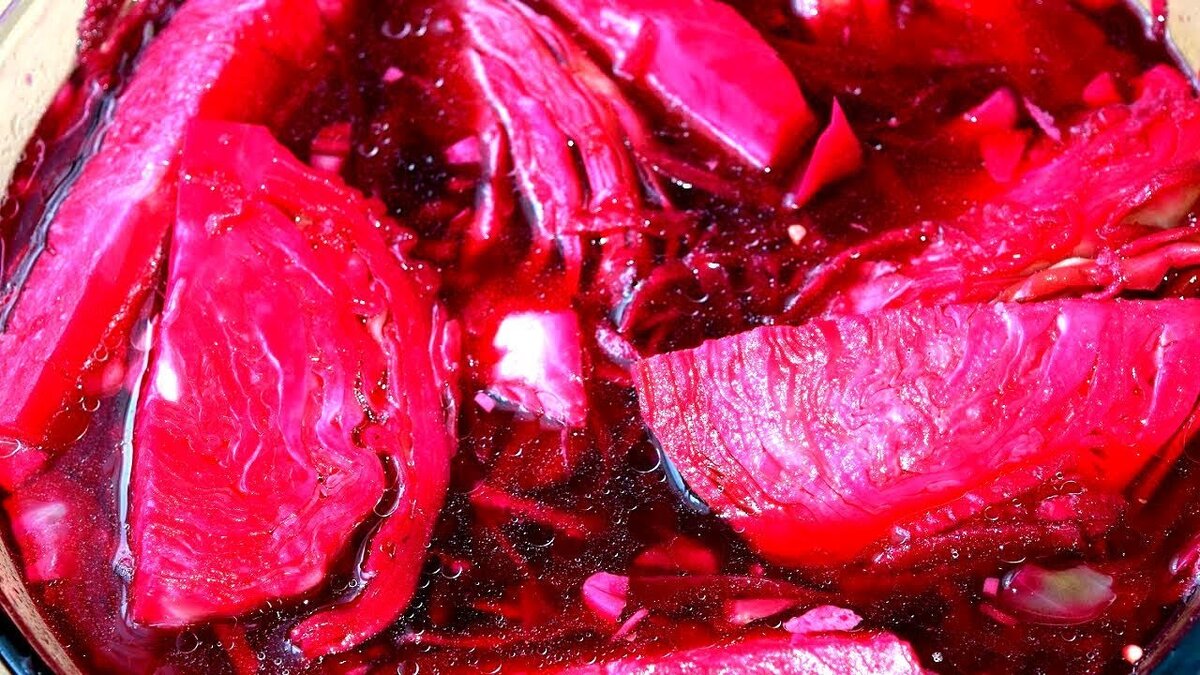 Маринованная капуста со свеклой! Всем доброго времени суток! Сегодня хочу поделиться рецептом очень вкусной маринованной капусты быстрого приготовления. Вечером сделал, а на следующий день уже можно есть! Такую капусту я помню еще с детства. мама очень часто ее готовила. Сейчас ноябрь, самое время пускать урожай капусты на разные вкусности! Как обычно, без соблюдения грамм и четких пропорций. Не умею я готовить мало) все кастрюльками и тазиками))) Итак, приступим: 1. берем овощи: капусту зимних сортов, четыре морковок и пару корнеплодов свеклы, несколько зубчиков чеснока. Готовлю я такую закуску в 9-ти литровой кастрюле, как раз все умещается.(Корнеплоды по наличию или вкусу) 2. Морковь и свеклу нарезаем крупными брусочками, чеснок - широкими пластинами. 3. Капусту режем крупными кусками. и начинаем складывать в емкость, чередуя капусту и морковь со свеклой и чесноком. Так заполняем всю емкость и отправляемся готовить рассол. 4. На такую кастрюлю я обычно беру 3 л воды, 300 гр сахара,