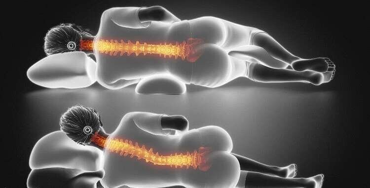 - Чтобы сохранять спину ровной в положении на боку, положите небольшую твердую подушку между ног. Это также снизит нагрузку с суставов. А под голову - большую и пухлую.