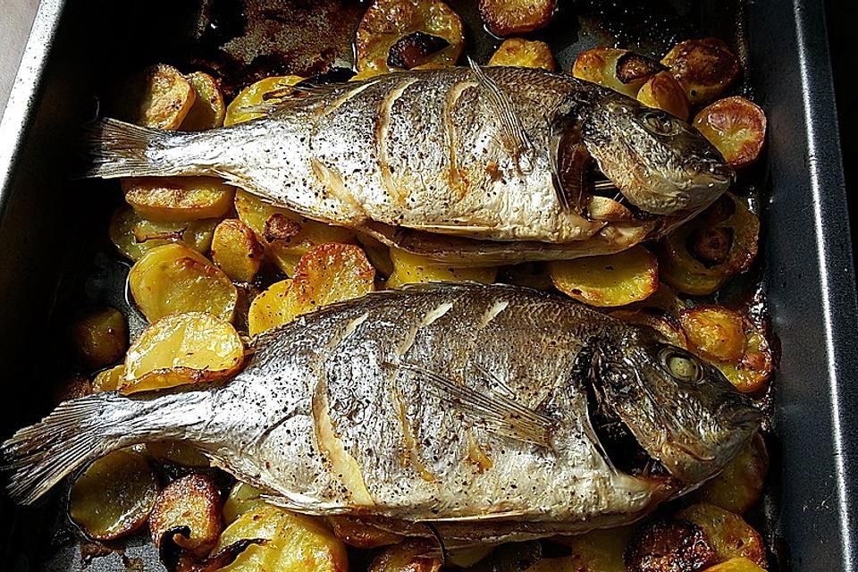 Если вашему коту покажут рекламу «рыба моя, я люблю вискас» — знайте, его пытаются обмануть. Потому что ни один приличный кот рыбу на вискас не променяет. Потому что рыба — это …РЫБА! Очень вкусная штука. Люди, конечно, не коты, но, подозреваю, рыбку любят ничуть не меньше. Готовят только ее редко, потому что рыбка сейчас стоит как-то совсем не гуманно, но… Иногда ведь можно позволить себе вкусного. В выходной, например, когда никуда бежать не надо, когда вся семья в сборе и время течет лениво -неспешно… Если согласны, берем: Как готовим: Картофель и лук чистим, нарезаем кружочками — и лук, и картошку, да, да. Толщина кружков — не более 1 сантиметра, иначе они долго слишком готовиться будут. Отправляем лук и картофель на противень. В баночке смешиваем масло и вино, солим (если примерно — то чайная ложа соли), перчим, выдавливаем туда прессом чеснок и хорошенько разбалтываем. А потом этой смесью поливаем картофель, оставив где-то четверть на рыбу. Отправляем картошку в духовк